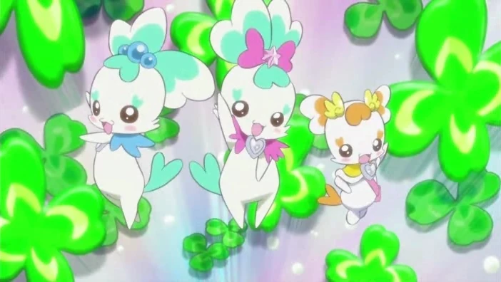 | Sie lebt mit Tsubomi Hanasaki und ist ihre Partnerin, wenn Tsubomi sich in Cure Blossom verwandelt. Sie, Coffret und Potpourri können sich in Flug Capes verwandeln, so dass ihre Partner fliegen können. |