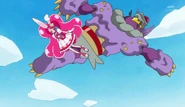 Beschützt von der Kraft der KiraKirarus konnte Ichika ihren Kuchen fertigstellen und entwarf einen Hasen-Kuchen, der sich in einen Tier Nachtisch verwandelte. Daraufhin verwandelte sich Ichika in Cure Whip. Überrascht von ihrem Aussehen und ihren Hasenohren, begann Whip Gummys Attacken auszuweichen und entdeckte dabei ihre Kraft wie ein Häschen weit und hoch zu springen. Doch dann entdeckte sie den Sweet Pact und nutzte seine Kraft um Gummy abzuwehren. Danach verwandelte sich Whip zurück und Pekorin und Ichika wurden von einer "jaba" sagenden Box überrascht...