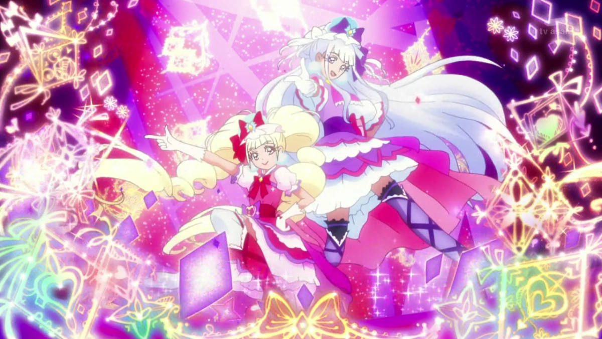 Cure MaChérie drückt den pinken Herz-Knopf in der Mitte ihres PreHearts und ruft "Are you Ready?", Cure Amour drückt ebenfalls den Knopf und ruft als Antwort "Jetzt geht's los!". Beide beschwören dabei einen Sturm, der um sie erscheint. Cure MaChérie hält ihr PreHeart vor sich, wobei ein großes rotes Herz erscheint, das sie mit den Worten "Hurra! Hurra! Lied des Herzens!" auf den Oshimaida loslässt. Cure Amour beschwört anschließend ein ähnliches, lila Herz, das sie mit den Worten "Hurra! Hurra! Tanz des Herzens!" abschießt. Die beiden Herzen treffen aufeinander und werden zu einem großen Herz, das den Oshimaida besiegt. - Twin Love Rock Beat: Eine Duo Attacke von Cure Amour und Cure MaChérie, die sie mit ihren Twin Love Gitarren einsetzen können. Die Twin Love Gitarren erscheinen und die Kristalle der Zukunft werden in die Gitarren eingesetzt. Mit der Gitarre in der Hand ruft Amour "Are You Ready?", währen MaChérie "Jetzt geht’s los!" ruft. Anschließend spielen die beiden eine Melodie auf ihren Gitarren und sobald die Kristalle der Zukunft aufleuchten, rufen die beiden "Erreiche, oh unser Lied der Liebe!". Cure Amour ruft "Die Dornen der Herzen..." und hält ihre Gitarre wie als Waffe, zielend auf den Oshimaida. Cure MaChérie ruft "werden zersprengt!" und zielt ebenfalls auf den Oshimaida. Die beiden rufen "Twin Love Rock Beat" und schießen ihre Attacken ab. Um ihre Attack zu beenden rufen sie "Wir lieben euch! Danke!".