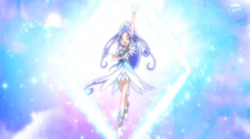 - Cure Diamond se transforma por primera vez y hace su ataque "Diamante Parpadeante" por primera vez