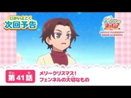 Merī Kurisumasu! Fen'neru no Taisetsu na Mono (メリークリスマス!フェンネルの大切なもの) traducido como ¡Feliz Navidad! Lo más importante para Fennel es el episodio 41 de la Temporada 19 de la franquicia Pretty Cure. ¡Es Navidad en la ciudad! Yui sale con su padre, Hikaru, por primera vez desde hace mucho tiempo. Mientras tanto, Fennel visita Ciudad Oishiina para investigar algo...