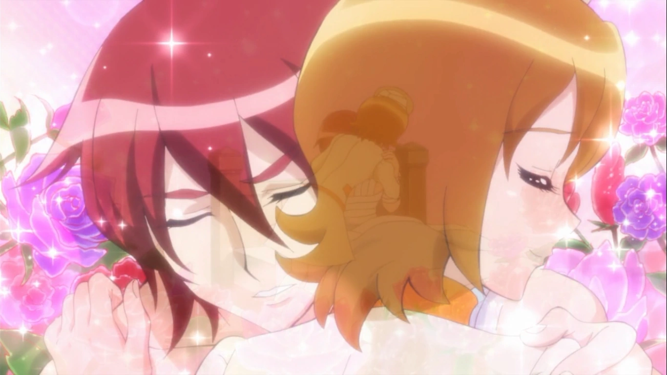 Hime admira el Vestidor Maquillaje Brillante cuando Megumi y los demás aparecen, estando esta rodeada de felicidad debido a lo sucedido. Ribbon esta muy contenta porque el poder del vestidor se haya activado y Glasan advierte que el objeto todavía oculta mucho. Hime se pregunta entonces que van a hacer con Phantom ya que lo encontraron herido y lo tienen en una habitación de la embajada. Yuko hace arroz para todos mientras Iona se preocupa por tener a Phantom tan cerca pero Blue le explica que aunque despierte no tendrá poder para pelear contra ellas. Yuko se transforma entonces en enfermera y pregunta si puede cuidar de Phantom. En el Reino del Cielo Azul, Espejo Profundo avisa a la Reina Mirage que las Pretty Cure han derrotado a Phantom y lo tienen retenido. Él convence a Mirage de que Blue quiere quitarle todo lo que quiere y por eso tiene que vengarse, así que manda a Oresky a por Phantom. Yuko va a llevarle arroz a Phantom mientras las chicas la vigilan de cerca. Phantom despierta pero Yuko intenta que se mantenga tranquilo mientras al mirar por la puerta, Hime se imagina que están abrazados. Iona también se asoma y piensan que se están dando un beso pero resulta que Yuko solo le esta mirando la fiebre. Phantom le pregunta porque esta cuidando de él y Yuko le contesta que le recuerda a un antiguo amor. Seiji ve que las chicas están espiando desde la puerta mientras Yuko dice que entendió la felicidad de cocinar para alguien gracias a esa persona. Seiji y Megumi parecen conocer de quien esta hablando mientras Yuko cuenta como era un chico muy esquivo y siempre huía de ella. Yuko explica que él sufrió un accidente así que le preparo un arroz para que se lo comiera. Ella se alegró mucho cuando vació el plato y consiguió convencer a su familia de que se quedase con ellos. Ribbon pregunta porque Yuko habla en pasado y Megumi le dice que hace dos años se puso enfermo y falleció. Yuko le dice a Phantom que a pesar de todo el dolor esos momentos son ahora sus preciosos recuerdos con su querido perro David. Hime se siente un poco decepcionada de que al final no fuese una historia de amor. Yuko dice que a pesar de que Phantom sea su enemigo quiere que se recupere para que pueda ver a su persona querida y Phantom se queda dormido pensando en Mirage. Hime cae en la habitación despertandolo pero Iona le asegura que no le harán daño. Phantom dice que algún día se arrepentirán de esto y avisa que las Pretty Cure que derrota se sumergen en la oscuridad e incluso vendiéndolo no podría salvarlas. Blue aparece entonces y Phantom lo culpa de todo, pero Blue le dice que tiene algo que decirle a Mirage.