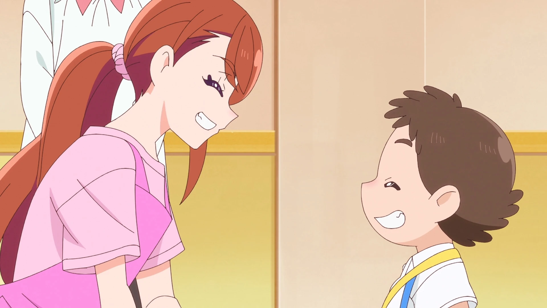 En la guardería, Ageha juega con los niños y Takeru menciona aquella vez que venció a un monstruo, así que ella le recuerda que no puede decir que es una Pretty Cure. Un niño empieza a llorar así que Takeru va en su ayuda, haciendo que Ageha se sienta orgullosa. Una vez en casa, Ageha come con ganas mientras cuenta lo sucedido. En mitad de la noche, Tsubasa ve como se ha quedado durmiendo trabajando en los materiales para la clase. Al día siguiente, la profesora informa a Ageha que Takeru se va a mudar. En el recreo, ella juega con todos, pero nota que Takeru no participa y sin embargo está leyendo dentro. Ella intenta invitarlo, pero Takeru le dice que no quiere jugar con ella. En casa, las chicas notan que Ageha está decaída así que les cuenta lo sucedido. Ella no sabe como poder animar a Takeru y piensa que quizás no sea la mejor profesora de preescolar. Cuando le preguntan por ese significado, ella recuerda que cuando sus padres se separaron fue precisamente una maestra de guardería la que cuidó de ella y se preocupó por cómo se estaba sintiendo. Por eso decidió seguir sus pasos, pero ahora se siente frustrada porque no puede hacer nada por Takeru. Ageha insiste en que solo necesitará un poco de descanso, pero Tsubasa piensa en qué hacer. Cuando al día siguiente Ageha va al trabajo, Tsubasa se esconde en su mochila. Él sale cuando llega a la guardería y le dice que sabe lo mucho que se esfuerza. Tsubasa le dice que no tiene que forzarse a fingir que está feliz, pues los niños preferirán que sea ella misma. En la guardería, ella va a ayudar a la sala de los bebés y cuando vuelve para jugar, empieza a llover. Ella va a buscar a Takeru que está jugando en la arena, pero este se niega a irse. Ageha recuerda todos los momentos buenos que han tenido y se pone a llorar. Juntos consiguen hacer un túnel en la arena y cuando se dan la mano Takeru le dice que la va a echar mucho de menos y por eso estaba tan distante. Ella le promete que jamás se olvidará de él y que volverán a jugar algún día. Skearhead aparece entonces y Tsubasa manda a sus pájaros para que avisen a las demás mientras el villano invoca un Kyoborg con unas hojas. Takeru le ayuda diciéndole a los demás que evacuen mientras se transforman en Cure Butterfly y Cure Wing.