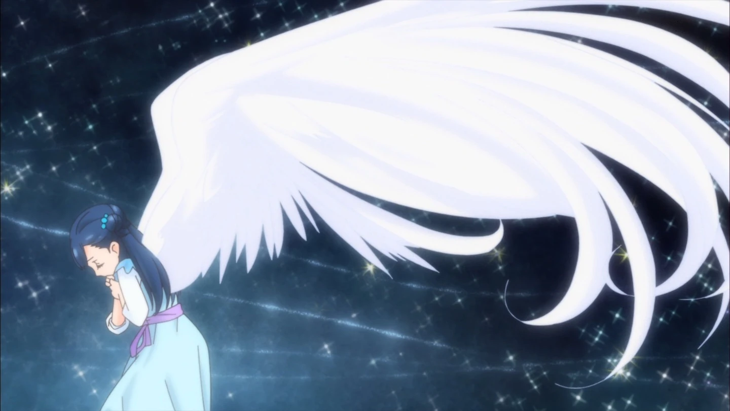 - Cure Ange recibe el Cristal Futuro Marino, que fortalece su ataque ¡Pluma del Corazón! y le permite usarlo ofensivamente.