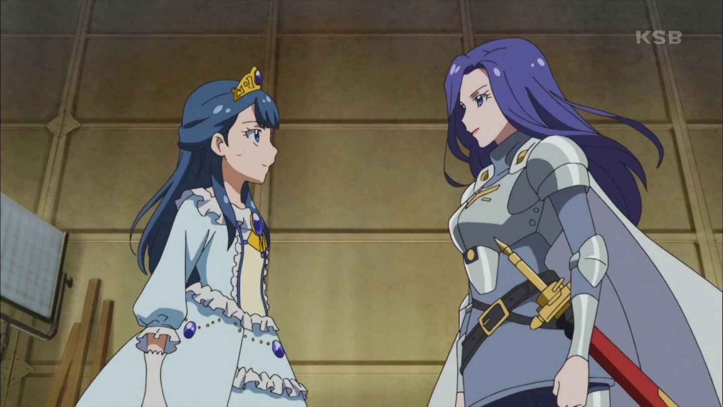 Las chicas acompañan a Saaya al rodaje de la película que va a rodar con su madre, "El amanecer del Caballero de la Rosa y la Princesa". Saaya hará de la princesa mientras Reira hará del caballero. Hugtan se pone a llorar ya que quiere participar y entonces la doctora Maki aparece para calmarla. De repente, Listol usa un invento que los transporta a todos a un lugar de fantasía. Hana está vestida de caballero, mientras que Homare es una ninja, Emiru una bruja y Ruru un gato. Ellas sospechan que ha sido Hugtan, pero Harry les dice que no. Al sacar su espada, Hana se da cuenta de que en realidad es la directora y Reira le dice que aprovechen las vistas para grabar material. La doctora Maki también está allí, pero el resto del equipo no. Ruru comenta que si completan la historia podrán salir de allí. Reira empieza a grabar su escena con Hugtan y Saaya cuando de repente Ranze Ichijou aparece interrumpiéndola. Ella reta a Saaya a una pelea y entonces empiezan a combatir, pero Saaya duda y falla. Ranze entonces se enfada y evita estrechar su mano ya que dice que no se merece ser su rival si no va a actuar en serio. Reira también le dice que parece estar descentrada. Merendando, Saaya les cuenta a Hana y Homare que se siente un tanto insegura. Antes de poder decir porque, un monstruo aparece persiguiendo a Emiru y Ruru. Daigan aparece entonces intentando detenerlo, pero acaba siendo herido. La doctora Maki y Saaya lo ayudan y Daigan le agradece por aquella vez que lo salvó. Mientras tanto, Hana le pregunta a Homare que va a hacer después de cumplir su sueño. Ella le dice que cuando un sueño termina otro empieza, y que quiere ver el mundo. Saaya habla con la doctora Maki quien le dice que no siempre ha sido pediatra, ya que estuvo en muchas ramas de la medicina hasta decidirse. Cuando Saaya implica que no se lamenta de nada, Maki le dice que no es verdad ya que hay veces que se arrepiente, pero que eso es algo que no puede evitarse. Las chicas están preparadas para grabar otra vez la escena. Saaya hace la escena estupendamente, pero entonces le dice a su madre que esta va a ser la última vez que actúe. Ranze se enfada pensando que Saaya solo tenía la actuación por un juego, pero ella le explica que no es así y que espera que en un futuro le vaya muy bien. Ambas se estrechan la mano como rivales mientras Listol los observa. Saaya les dice que quiere ser médico haciendo que su vestimenta cambie. Reira duda un poco, pero la apoya diciendo que por lo menos terminen la película bien. Cuando está sola, Reira siente un poco de frustración de que Saaya no quiera seguir sus pasos y Listol aprovecha para convertirla en un Mou-Oshimaida. Este atrapa a Hugtan pensando que es Saaya mientras las chicas se transforman en Pretty Cure. El monstruo guarda a Hugtan en su interior y cuando las chicas están atacando, Ange se da cuenta de que es su madre.
