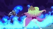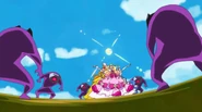 Después de eso, muestra al Reino de la Esperanza de noche con la sombra de Dyspear cerniéndose sobre él, seguido de tomas de Close, Shut y Lock. Luego muestra a Haruka, Minami y Kirara sosteniendo sus Perfumes Princesa, y uno de ellos se está llenando. Luego pasa a Flora, Mermaid y Twinkle luchando contra cada uno de los generales. Después de otra escena rápida de ellos en su Modo Elegante, se les muestra usando algún tipo de ataque contra un grupo de Zetsuborgs. Luego, llamas azules se elevan como una transición a la siguiente escena, en la que Twilight toca su violín y una Flora preocupada a punto de luchar contra ella. Luego, Flora sonríe antes de pasar a una escena en la que ella junto con Mermaid y Twinkle miran con determinación.