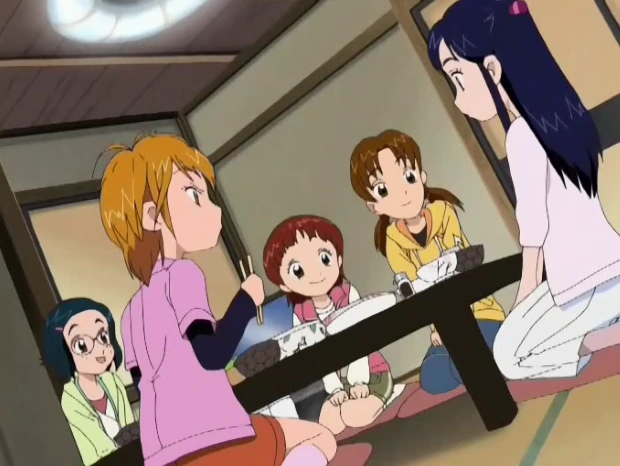 El episodio empieza con Sanae, la abuela de Honoka, diciéndole a su nieta que el sábado se va hacer un viaje nocturno con una vieja amiga. Su abuela le dice que invite a alguien a quedarse a dormir para que no esté sola. A la mañana siguiente, de camino al instituto, Nagisa recuerda lo sucedido en el episodio anterior. Honoka se acerca a ella y le pregunta si le gustaría quedarse a dormir en su casa el sábado. Nagisa se alegra mucho, y le dice que le vendrá bien ya que como en los parciales no le fue nada bien, su madre está muy pesada con que estudie. Decide decirle a sus padres que se quedará en casa de Honoka a estudiar, y esta al principio cree que es verdad pero Nagisa le dice que ya que se queda en su casa a dormir no piensa estudiar. En la mansión oscura, el criado zakenna alto tira sin querer té caliente encima del bajito, por lo que empiezan a discutir. Belzei los manda callar, y empiezan a decir que necesitan el poder de las piedras, para el Rey Haaku, aunque Belzei murmura que no solo para él. Honoka está limpiando cuando llaman al timbre y aparecen Nagisa con Shiho, Rina y Yuriko. Las chicas dicen que querían ver la casa de Honoka y Nagisa las invito y a Honoka le parece bien. Nagisa deja a Porun, Mepple y Mipple en la habitación para que no les oigan, pero Porun quiere jugar con alguien y al ver a Chutaro se le ocurre algo. Las chicas están viendo la casa, cuando Chutaro pasa con Porun encima. Nagisa y Honoka se alteran intentando convencer a las chicas de que Porun es un juguete. Honoka dice que deberían hacer la cena entre todas y van al supermercado a comprar, donde Nagisa quiere comprar un montón de chocolate. Nagisa, en la cocina, empieza a preguntar qué están cocinando cuando Rina le dice que las ayude ella también. Nagisa dice que no sabe cocinar pero Honoka insiste y la enseña. Cuando Nagisa se corta, Honoka le pone una tirita. Las chicas se ponen a cenar y empiezan a alabar a Honoka que cocina muy bien. Cuando le preguntan si le interesa algún chico, Honoka se queda pensando pero dice que no, mientras Nagisa la mira fijamente. Shiho, Rina y Yuriko se van, y en la cama, Honoka piensa en Kiryia. Porun duerme, mientras, en la casita del perro de Honoka. Nagisa le comenta a Honoka que es raro que con el tiempo se haya quedado a dormir en su casa cuando antes ni se conocían. Recuerdan también su discusión y como se hicieron amigas de verdad. Mencionan la gente que han conocido, y Honoka dice que también han habido algunas despedidas, pensando en Kiryia. Nagisa le pregunta a Honoka si le gustaría volver a verlo, y Honoka le dice que no lo sabe, ya que no sabe que pasará a partir de ahora. Nagisa le dice que pase lo que pase estará a su lado.