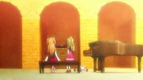 Las dos se dan la mano y saltan a la vez esquivando los discos del Negatone. Juntas esquivan los ataques haciendo caer al monstruo. Subidas en el tejado del colegio, Rhythm le pregunta a Melody si quiere que peleen juntas y Melody le contesta que por supuesto que sí. Rhythm le dice que no la llame Kanade, sino Rhythm y ambas se abalanzan contra el monstruo. El Negatone esquiva su patada pero ellas saltan y rodeándolo le dan un puñetazo por los lados. Las dos lo agarran por los brazos y lo estampan contra el suelo. Juntas lanzan la "Armonía Pasional Pretty Cure" devolviéndole a su forma normal y Hummy saca la nota musical del disco que se inserta en Dory. En la iglesia, Hibiki y Kanade escuchan el disco y ambas se disculpan por su malentendido. Kanade le dice a Hummy que peleará como Pretty Cure y Hummy le ofrece la pata. Al tocarla, Kanade se pone histérica y comienza a abrazarla, mientras Hibiki comenta que Kanade tiene una obsesión con las patas de los gatos. Kanade se enfada y persigue a Hibiki mientras esta se ríe.