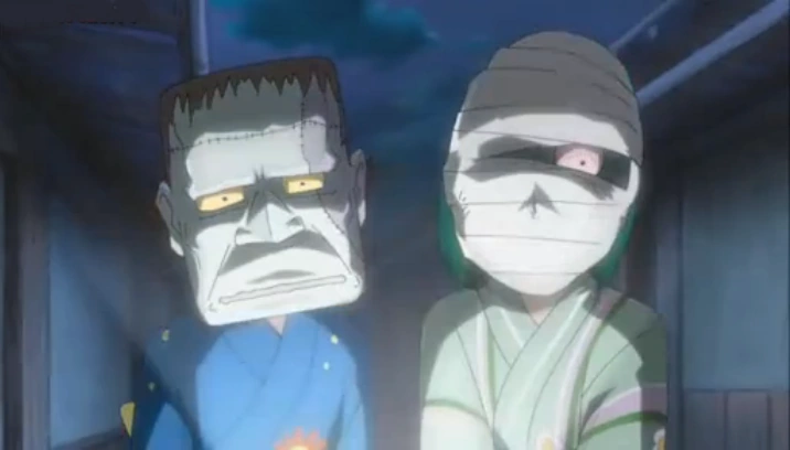 Rin y Komachi caminan con las bolsas para la prueba de valor mientras Rin comenta que no le gustan los monstruo pero Komachi le dice que sí están juntas no tiene por qué tener miedo. Komachi dice que el vecindario le ha encargado la prueba de valor y lo hará lo mejor que pueda y por eso necesita la ayuda de todos. Komachi le recuerda que han quedado con todos en el arco de la colina. Shibiretta le pregunta a Anacondy si no necesita escribir un informe sobre lo ocurrido la otra vez ya que las Pretty Cure lograron llegar a Eternal. Shibiretta bromea con que Nebatakos la perseguirá en forma de fantasma pero Anacondy la corta diciéndole que vaya a por la polvera. Karen, Urara, Cocoda y Nattsu caminan quejándose de que Nozomi llega tarde pero afortunadamente Kurumi esta con ella. Ellos comentan que Shiro tenía un trabajo por lo que lo veran despues. Urara y Cocoda deciden ir hacia atrás para buscar a Nozomi y Kurumi mientras Karen y Nattsu van hasta el punto de encuentro. Nozomi y Kurumi corren ya que llegan tarde, mientras Shiro hace lo mismo. Komachi va explicando a Rin en qué consistirá la prueba de valor cuando Shibiretta escondida hace que los edificios cambian y se encuentren en un pueblo del periodo Edo. Rin ve a un hombre echando agua y decide preguntarle pero al volverse ve que el hombre no tiene ojos y asustandose se marcha corriendo mientras Komachi va detrás de ella. Rin entra en un local pero allí la gente es igual por lo que se asusta de nuevo y sigue corriendo. Karen y Nattsu se encuentran también en esa dimensión y ve una fila de sombrillas que hacen ruido. Estas se levantan demostrando ser monstruo, asustando a Natts y Karen que comienzan a correr. Cocoda y Urara caminan cuando oyen a una mujer llorar. Cocoda se acerca y la mujer se transforma en un demonio asustando a Coco que se pone en la cara de Urara, quien empieza correr sin ver nada. Nozomi y Kurumi llaman a una mujer en una barca pero esta no parece escucharlas. A la segunda vez, el cuello de la mujer se vuelve largo y la cabeza comienza a perseguir a Milk y Nozomi que corren alejándose de ella. A Syrup mientras le persiguen farolillos flotantes. Komachi consigue alcanzar a Rin y le da ánimos diciéndole que puede contar con ella. Komachi se da cuenta de que el arco todavía está y que podrán encontrarse con los demás allí, además se le ha ocurrido una idea. Una anciana esqueleto se acerca a ellas pero al darse la vuelta las ve con máscaras y se asusta. Komachi pasa por un puente donde se le aparece una fantasma pero Rin aparece detrás imitando y el fantasma se marcha asustada. Komachi halaga a Rin diciendo que es una genial fantasma. Mientras, Nozomi y Milk se esconden en un canasto pero al oír ruido se caen de él y se encuentran con los demás. Ellos se preguntan dónde encontrar a Komachi y Rin y Kurumi se da cuenta de que el arco sigue allí.