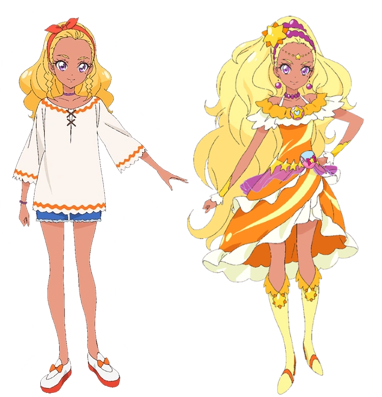 Cure Soleil (キュアソレイユ) è la Pretty Cure in cui Elena si trasforma. Per trasformarsi ha bisogno del Star Color Pendent e della sua Star Color Pen.
