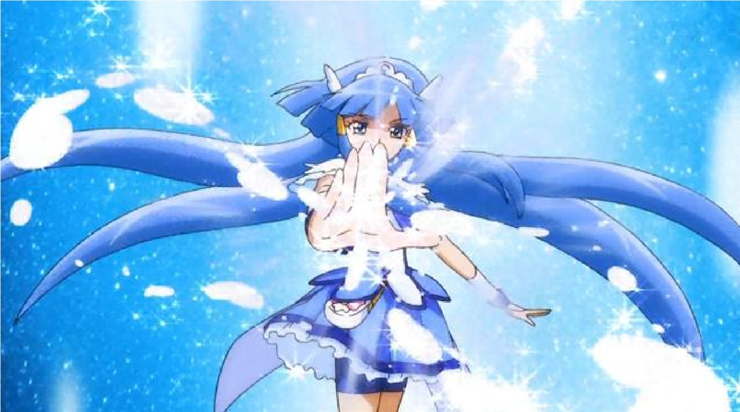 Cure Beauty (キュアビューティ)? is the Pretty Cure alter ego of Reika. Cure Beauty has the power of Ice. This gives her the ability to freeze wind and make ice swords for herself. Her name is an allusion to how princesses, common main characters in fairy tales, tend to be beautiful. For Glitter Force, her introduction is "Cool and swift as the winter wind! I'm Glitter Breeze!"