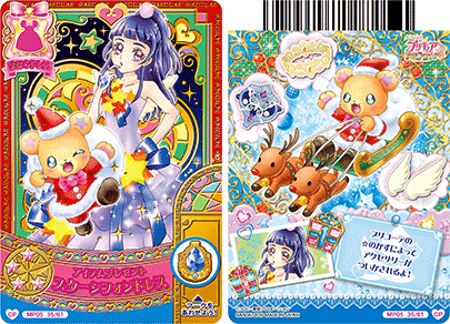 Magic Party 5 Christmas Party (まほうのパーティー5だんクリスマスパーティー)? is Part 5 of the Mahou Tsukai Pretty Cure! series of Data Carddass trading cards. It was released by BANDAI on December 14, 2016, and copyrighted by ABC Toei Animation.