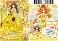 Rather than including a unique clothing item for each card, the Go! Princess card series organized Dress cards into clothing "styles." Each Dress card belonging to a particular style has the same name (the style's name), and a subtitle with that specific card's color (or, in the case of the Pretty Cure Dress style, the name of the model's Cure form).