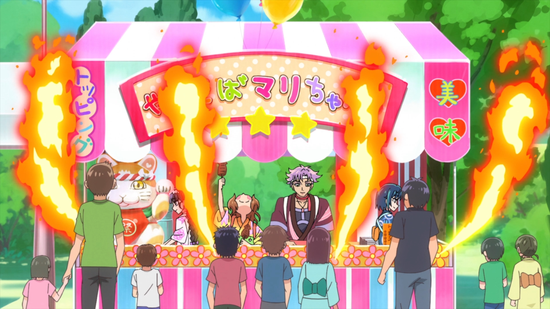 Festival, Here We Go! Mari-chan's Fried Noodles (おまつりわっしょい!やきそばマリちゃん Omatsuri Wasshoi! Yakisoba Mari-chan)? is the 30th episode of Delicious Party♡Pretty Cure and is the 903rd episode of the Pretty Cure franchise overall.