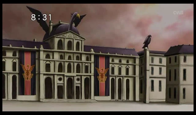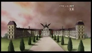 The outside is in the Neo-classical style, as are most buildings in Yes! Pretty Cure 5, and it references the front of the Louvre Museum. There are many windows and a large bird is on the dome of the roof. There are also long pieces of cloth depicting Eternal's logo i.e. a five legged bird. There are also columns holding the building up and there is a courtyard in front of the building. In virtually all its appearances, the sky looks dark and cloudy over the building.