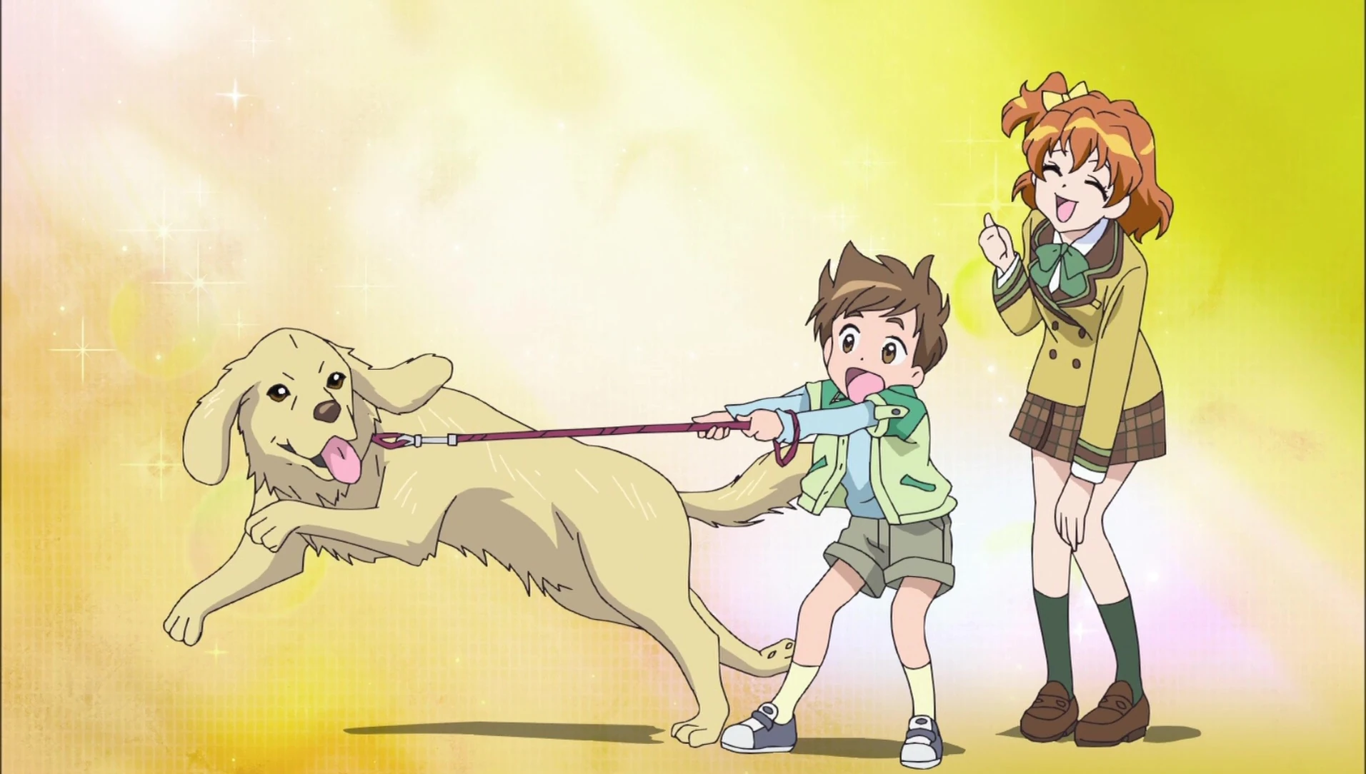 Inori meets up with Lucky and his owner, she reminds him that because she is still healing he should make sure she doesn't push herself too hard. Just then, Lucky runs off into the water and Inori chases after her, leading them to play with her as the yellow Pickrun watches from above. But unknown to them Setsuna is also watching. She transforms into Eas and approaches them to change Lucky into a Nakewameke.