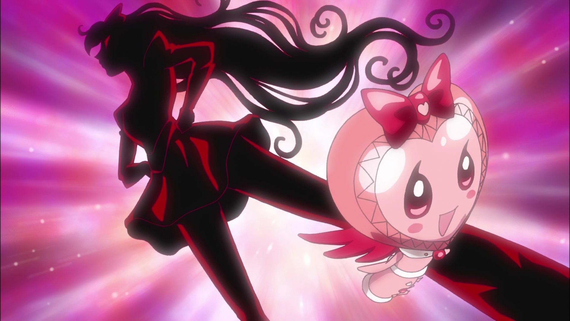 - The title card shows a shadow figure resembling Sailor V from Sailor Moon.