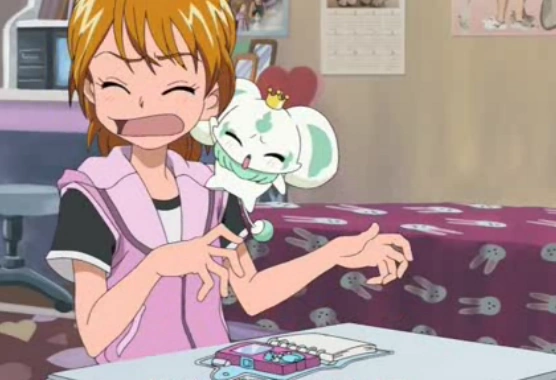Meanwhile, in Nagisa's room, Pollun is forcibly playing with Mepple, prompting the girl to scold the young prince for not being more quiet. Ryouta then calls Nagisa, stating that lunch is ready. She leaves the two fairies alone.