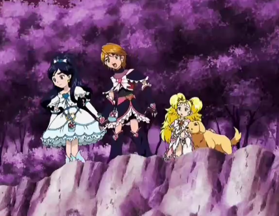 Later, Nagisa and her family head out to camp, with Honoka joining them, along with Chuutaro. Honoka says goodbye to her grandmother and Nagisa comments on how sad it is that Hikari was unable to join them since she was too busy. As they are leaving, Chuutaro decides to try to bother Ryouta by stealing his snacks, causing everyone to laugh. Sitting on the roof are Seekun and Inteligen, with Inteligen commenting on how wonderful the Garden of Rainbows is. In the back car are Mepple and Mipple, with Mepple voicing his happiness to know that Pollun wont be able to disturb them this time. Mipple feels sad about it and he compliments her kindness, causing her to blush.