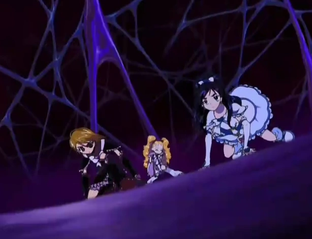 Elsewhere, Honoka is listening to trees using a stethoscope. She notices that everyone else is gone and Mipple expresses concern. Nagisa notices that everyone on the Lacrosse Field has also fled and she spots Honoka nearby, with both of them wondering where Hikari may be. Honoka points out that she is supposed to be at Akane's, but to their surprise, they spot a giant Zakenna mass with Hikari on the roof. It consumes her and transforms into three large ice dragons and attacks the girls.