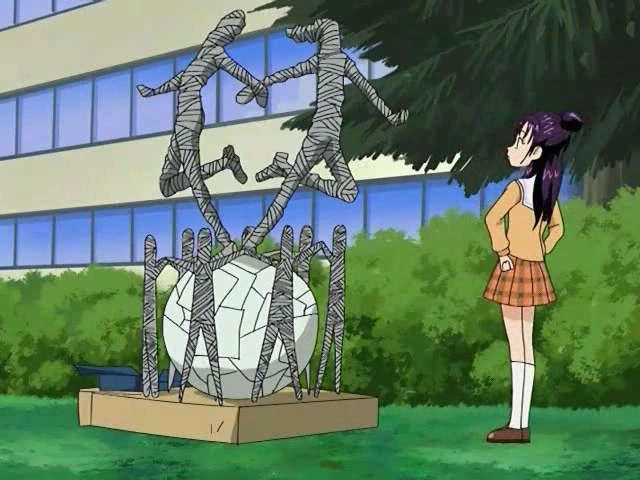 Meanwhile, Kenta looks for Miyasako when Kayo returns. He asks her about his location and she shows him a grave, which starts to move around and Miyasako suddenly reveals himself to Kenta. Kayo explains that his role is to act as the human body model for the event and he just happened to get a bunch of red paint on his face, which Kenta claims looked like blood.