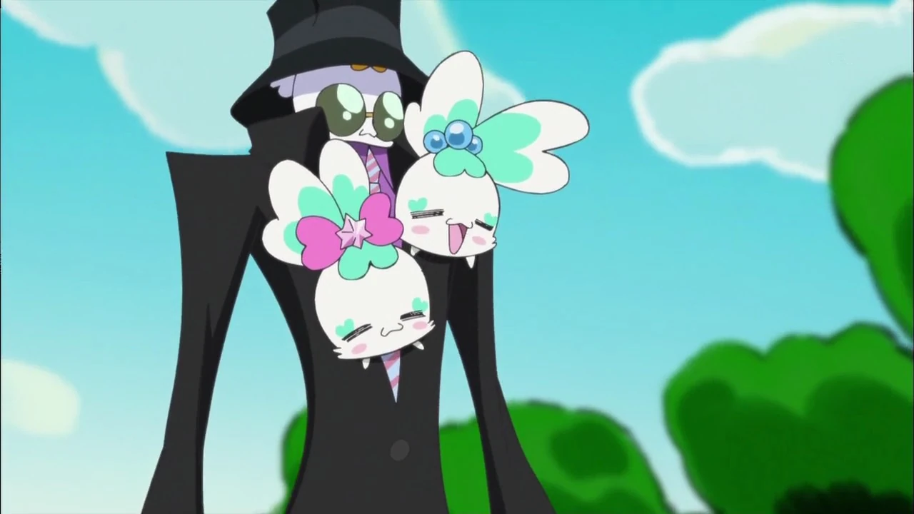 In an attempt to locate a partner, the fairies dress themselves as an adult but struggle to find anyone; considering the mess they make in their search. At first Potpourri assumes it to be the girls teacher, but this is wrong and they head to a garden full of flowers when they spot several students and people taking photographs of them. Potpourri remarks upon this rudeness before commenting that she was sure a girl there could have been a Pretty Cure.
