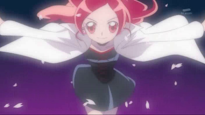 Potpourri inserts his seed in the round lock and the girls all go into separate universes. Blossom was in a field of cherry blossom petals, Marine was in a huge ocean with some poles, Sunshine was in a huge sunflower field while Moonlight was in a field full of purple flower petals. All of the fields had solar eclipses. Suddenly girls with similar hairstyles, black dresses and white lab coats appeared in each world. They reveal themselves to be the Cures' shadows, their past selves.
