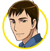 Yuuichi is a handsome man with brown hair, strong eyebrows, and brown eyes. He appears to be in his twenties or thirties. Based on his clothing, he appeared to have a white-collar job.