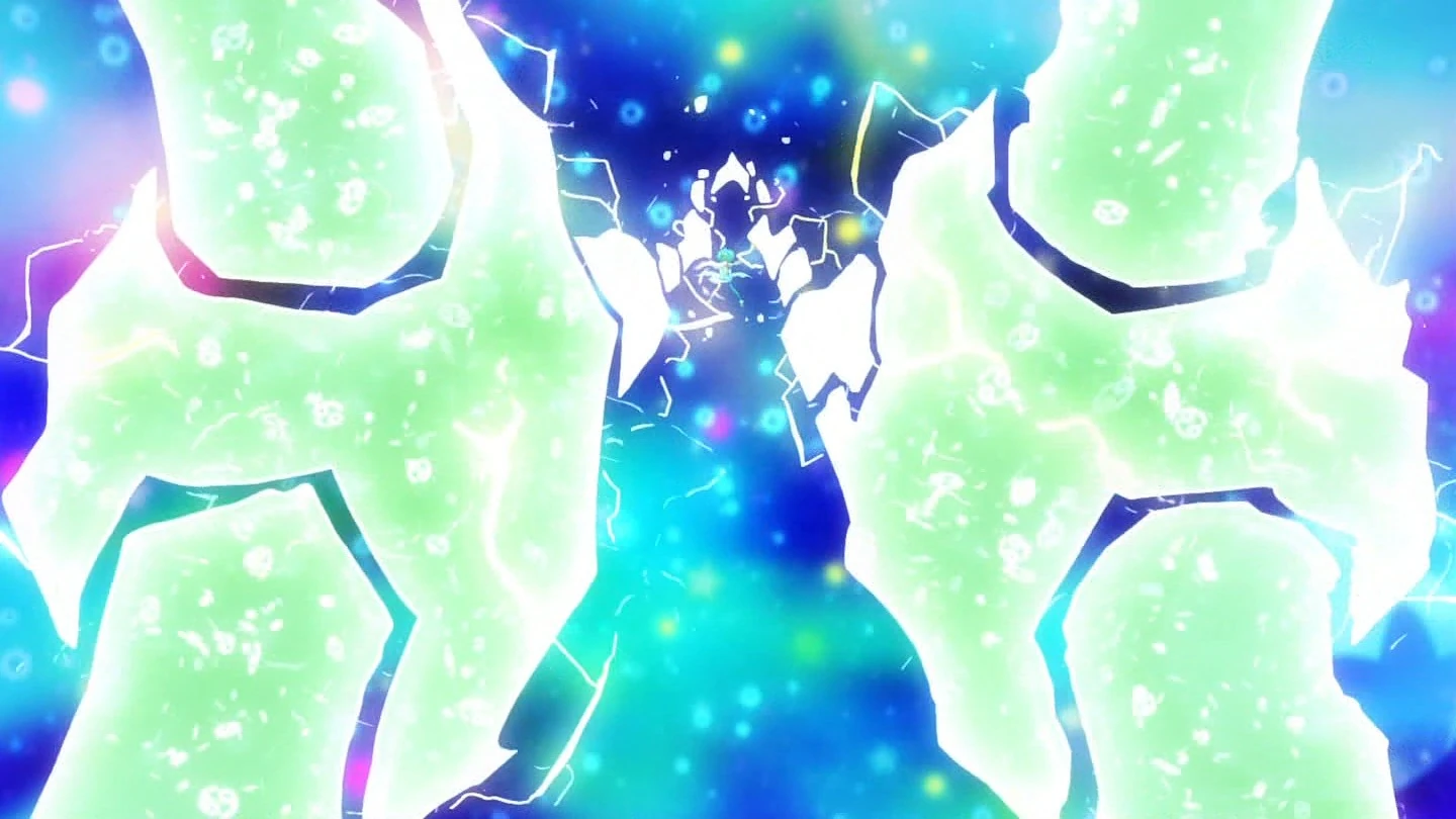 Milky's Star Color Pendant shines and creates a large green heart that the star on her headband absorbs. Milky spins around to charge the energy and then lightning bolts come shooting out of her antennae to electrocute her enemy.