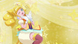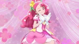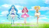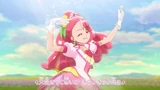 The ending starts with a zoom in on the Cures dancing in a field. We then cut to individual close up shots of Sparkle, Fontaine and Grace posing. As the song kicks in, the Cures start dancing with big grins on their faces. The Cures to proceed to continue dancing in a field of flowers until the pre-chorus kicks in, where the sun starts to set and it becomes night time. As the pre-chorus starts, we see Pegitan, Nyatoran and Rabirin who winks at the camera.