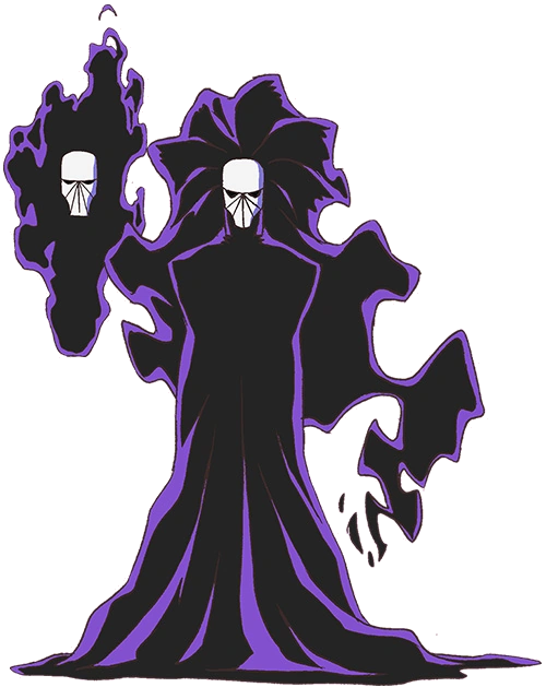 Noir appears to be a tall slender man who wears a floor-length dark purple robe and a white mask, giving him a tall and imposing appearance. He is also recognized for his long dark purple hair.