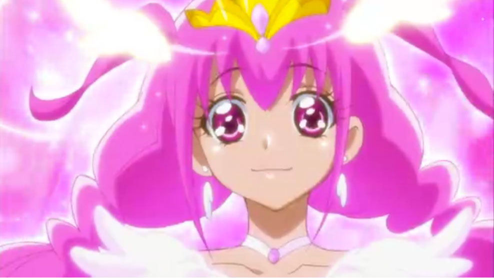Suddenly, a bright hand reaches down and grabs Happy's hand, pulling her from despair. It is Candy, who finally managed to reach the Cures. The Pretty Cure book glows. Pierrot finally manages to knock Candy out of the sky, but the five Cures swoop in and rescue her in their newly attained Ultra Forms. Pop carries Candy to safety as the Cures effortlessly demolish Pierrot's entire army before attacking him.