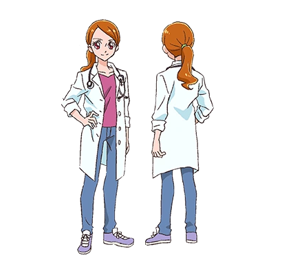 Satomi resembles her daughter with long curly auburn hair worn in a low ponytail. She has red eyes. Normally she wears a mauve top with denim pants and a pair of lavender and white sneakers. Over this is a white labcoat with a stethoscope around her neck.