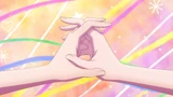The next scene shows Wonderful chasing after a Garugaru, with Friendy close behind her. Wonderful then proceeds to throw Friendy into the sky, where Friendy smiles and makes a heart with her fingers. Nyammy and Lillian stand back to back as Garugarus run around them. The two Cures glance at each other before successfully catching the Garugarus. Wonderful and Friendy are then shown running after a younger Iroha taking Komugi for a walk.
