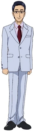 He can always be seen wearing a blue suit, with a pink dress shirt and a red tie, and black shoes. He has smooth, dark blue hair, and wears glasses. He also has a light tan.
